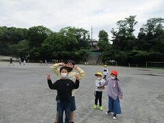 それでも、帽子はかぶりました。汗ふきタオルも、服もびしょびしょになりました。マスクは子どもたちから離れて外して深呼吸しました。熱中症対策をしながらの感染症対策の日々は続きます。
