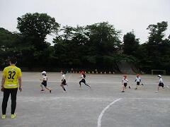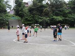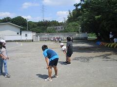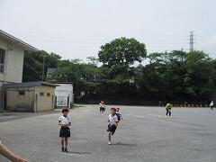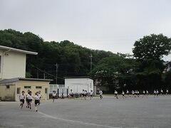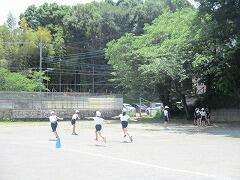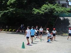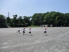 トラックの向こうでは、5・6年生がバトンパスの練習。これは自主練習かな。