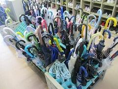 学校では、どちらのタイプの傘立てにも、名前の表示をして、自分の場所に傘を差し込むことにはなっていますが、今日、見て回ったところ、きちんと立ってない傘も何本か目にしました。