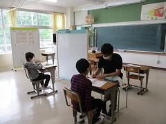 担任以外の職員が教室に入ったりもしながら、子どもたちの活動を支えていきます。基本は、「少しがんばればできることならば、がんばってやってみる」です。