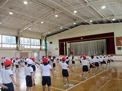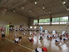 体育発表会どころか、外遊びもできない雨でした。各学年、体育館を使って、最小限の練習を行いました。