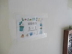 今年度、清掃担当の井上先生が、各掃除箇所に担当クラスの表示をつくりました。