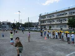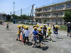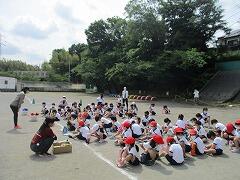 熱中症は一人一人の注意で防げるものだと言われます。炎天下のもと、気がついたら帽子をかぶらず走り回っていたとか、気づいたら1日水筒の中身を飲んでいなかったとか、そういう危険なことが起こらないように呼びかけていきながら、熱中症予防意識を高めていきます。