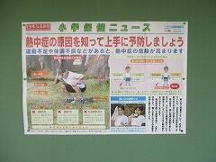 保健室前の廊下掲示に「熱中症」のポスターが貼ってあります。