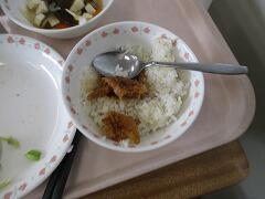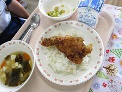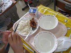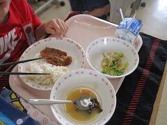 今日の給食はみそかつ丼でした。体育発表会前日のげんかつぎ。「かつ」です。