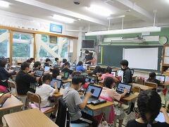 昼休みは、一部の子どもたちがカメラに大興奮で、取材や撮影は思うように進まない上に、校長、教頭、教務主任3人がかりでも子どもたちを制することはできませんでした。
