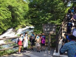 遊覧船で中禅寺湖からの景色を楽しんだあと、華厳の滝を見に行きました。かなりの水量で迫力のある姿を見ることができました。