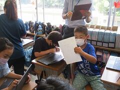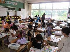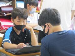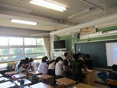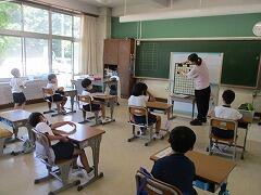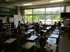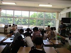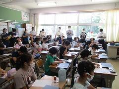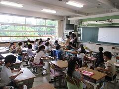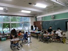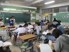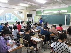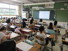 1つの授業を皆で参観し、「話し方」「問いかけ方」「活動のさせ方」などなど場面場面で学ぶべきことはたくさんあります。例え担当学年は違ったとしても、明日の自分の授業に生かすことはできます。こういう形の研修を年に数回行いますが、その際、該当クラス以外は自習となります。