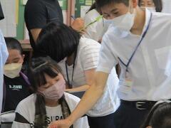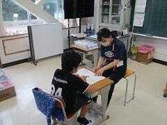 学校医の荒井先生に来ていただき、家庭科室で行いました。