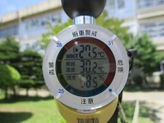 今日も、外に置いてある黒球式の気温計からは「ピピピピピピ」というアラーム音が時々鳴っていました。気温計とにらめっこしながら、子どもたちが安全に活動できるように教頭、養護教諭、教務主任等と情報を共有しています。