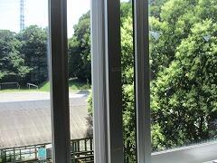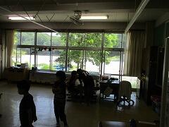 教室のエアコンは稼働していますが、換気のために教室の窓や廊下の窓を開けているため、そこから温風が入ってくる関係で、室温がなかなか下がりません。大変やっかいです。