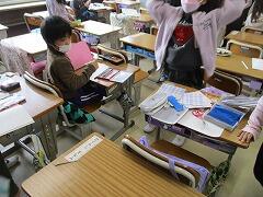 さて、今日、みなさんに通知票を渡します。がんばったこと、がんばってほしいことが書いてあります。必ずお家の人に渡してくださいね。