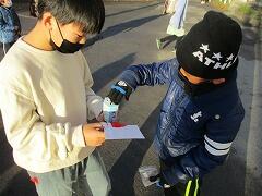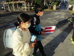 担当の子どもたちが、登校してくる子どもたちに声をかけながら、赤い羽根の募金活動に励んでいました。