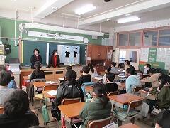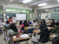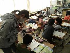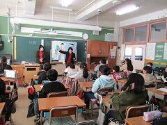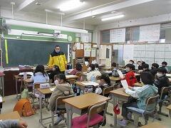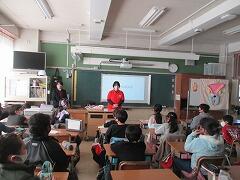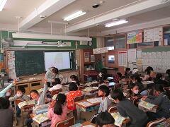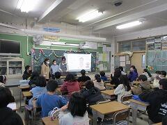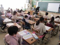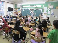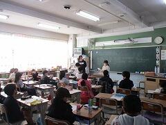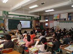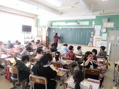 今回は、4年生3クラス、各2時間ずつ昨日と今日2日にわたって授業をしていただきました。(写真は4年1組の様子です。)どのクラスでも、前半は足立先生、後半は小路先生による授業でした。