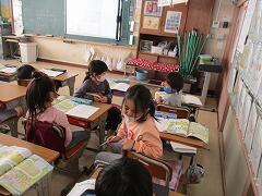 図書室をのぞいてみると、本を選んでいる児童、席に腰掛けて選んだ本を読んでいる児童がいました。「雨の日は室内で静かに過ごしましょう」とはよく言われる言葉ですがまさにそんな感じです。