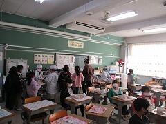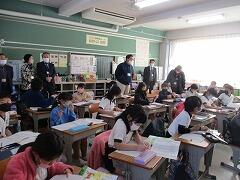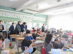 委員の方々が教室に入ると、振り返って手を振る子どもの姿も見られました。地域と学校がつながっていく良さを感じる瞬間です。