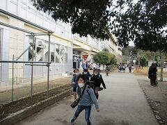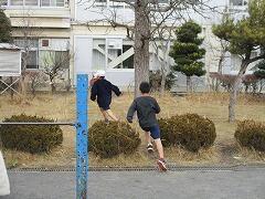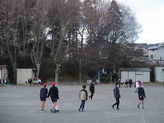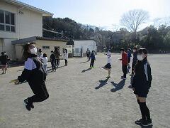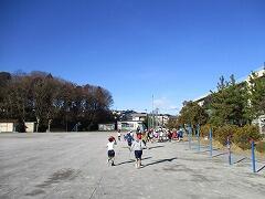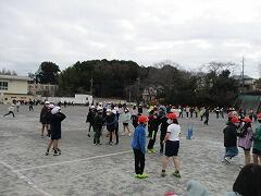 寒い中、朝から走っている子どもたちの様子です。