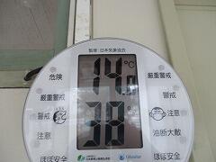 職員室前の廊下の温度計は12時の時点で14度でした。