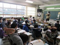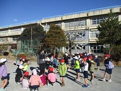 雨や薄くはった氷の影響で、横断歩道などのペンキの線やマンホールやふたなど道路にある金属類等は大変滑りやすくなること。そして、①落ち着いて歩く、走らない②転んだときに危ないので、ポケットに手を入れて歩かない 1人1人が落ち着いて行動するようにと話しました。