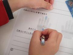 その後、保健の先生から、ハンカチについてのお話もありました。忘れてしまったとか、昨日のハンカチそのままとか、服でふいちゃったとか、そんな例も出しながらきれいなハンカチを使う大切さを教えていただきました。
