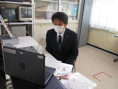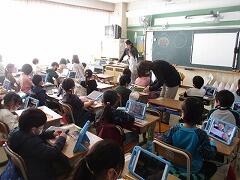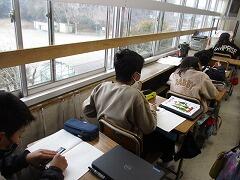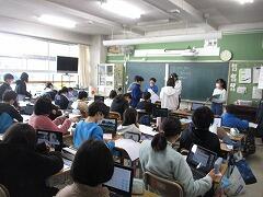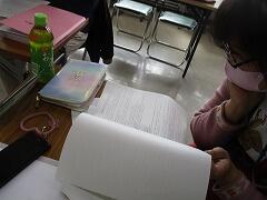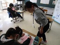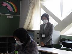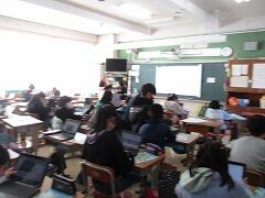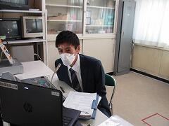 机と机の間の狭い通路を歩きながらの毎日の指導も大変ですが、担任もここまでがんばっています。
