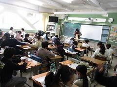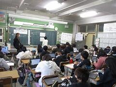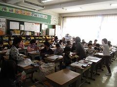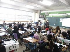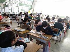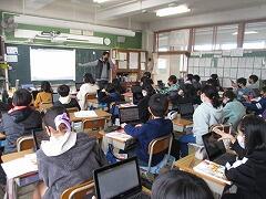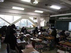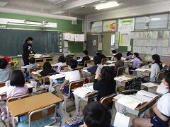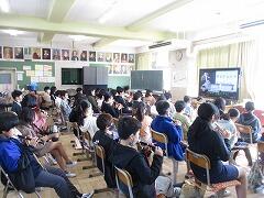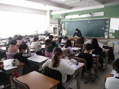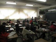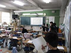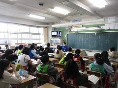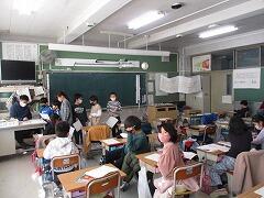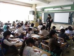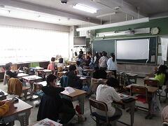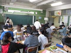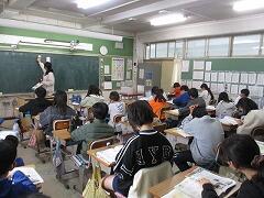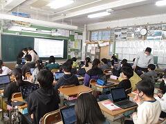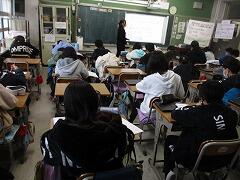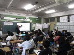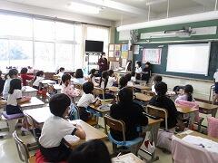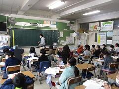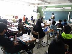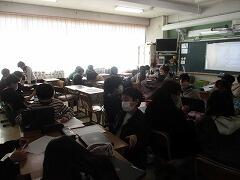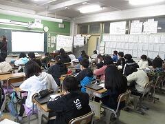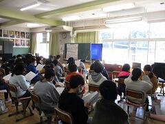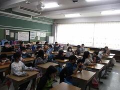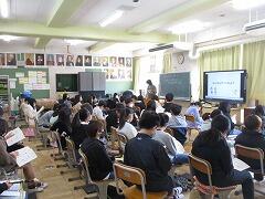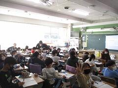 どの教室でも、子どもたちは中学校の先生の話を熱心に聞いていました。先生方への質問コーナーでは、宿題や部活のことなど子どもたちの興味があることについてだされました。