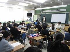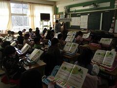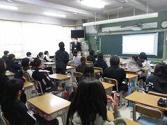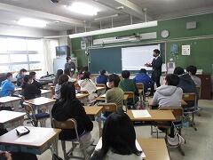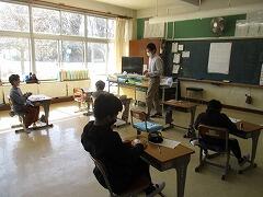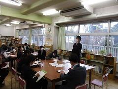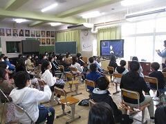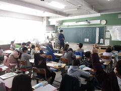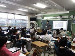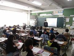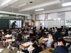 この時期に、中学校の先生に来ていただき、「中学校って?」というお話をしていただくことで、子どもたちのスムーズな中学校生活のスタートに一役買えればという願いの元行いました。