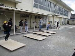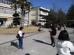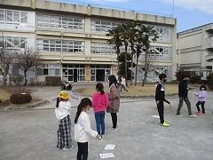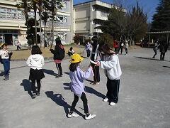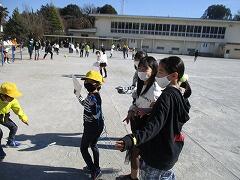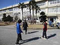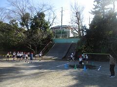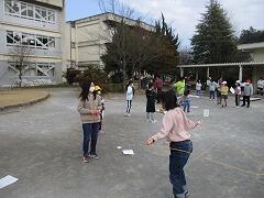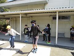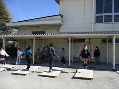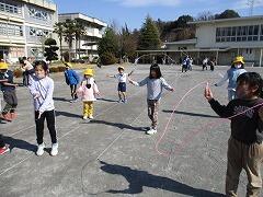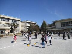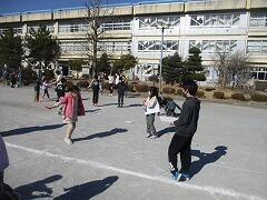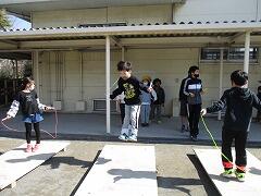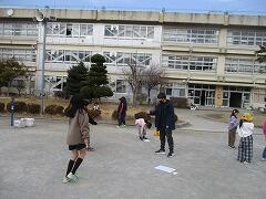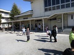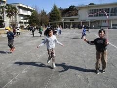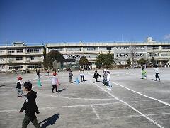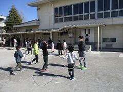 昼休みには、たくさんの子どもたちが校庭に出てきました。短縄をもった子どもたちも多くいました。