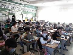 教室の中は、こんな感じでぎっしりです。子どもたちも少しずつ大きくなっていますからなおさらです。今日は5年2組で算数の授業を参観しました。ぎっしり感のある教室でよくがんばって勉強していました。