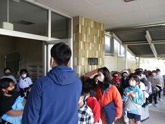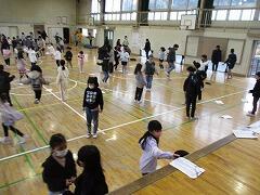 縄跳びチェックのために高学年のお兄さんお姉さんを探す子どもたち。