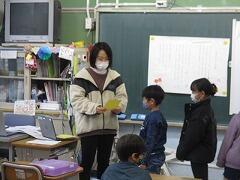 校内書き初め展の表彰と、県の書き初め展の表彰,国土緑化運動で賞を取った児童の表彰,柏駅伝の表彰を行いました。堂々とした態度で賞状を受けとっていました。