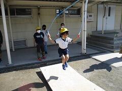 カードで目標がはっきりしていて、できたらチェックしてもらえるので、子どもたちにとっては励みになったようで、最後の日も子どもたちは一生懸命跳んでいました。