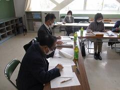 今日は、集計して取りまとめた学校評価を見ていただいた上で、1年間の振り返りをする会としました。