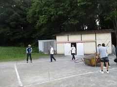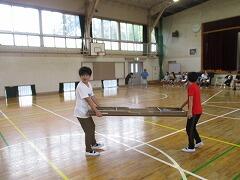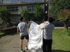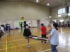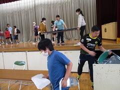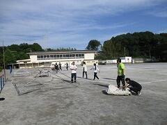 外のくい打ち、ロープ張り等は昨日に職員で行いましたので、中でできる準備を5・6年生の力を借りて行いました。