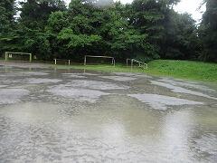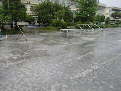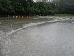児童席、トラック、観覧席どこを見ても水たまりです。