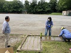 校庭側の区切られた部分に、稲を植えてみてはどうかと、案が出て、あれこれ動いてくださいました。