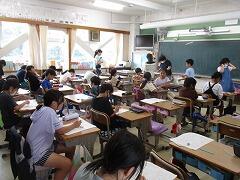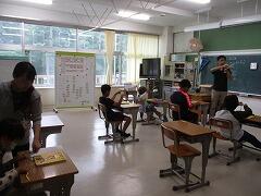 体育館予定でしたが、この2日間で中の温度がかなり高くなっていたので急遽、理科室と家庭科室に変更して実施しました。