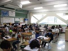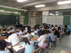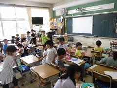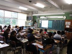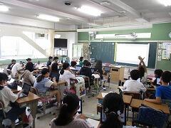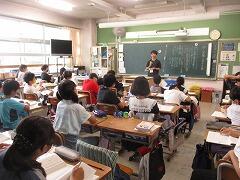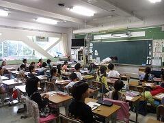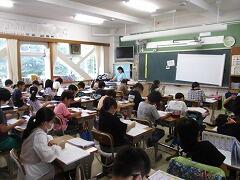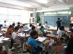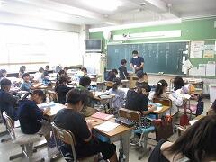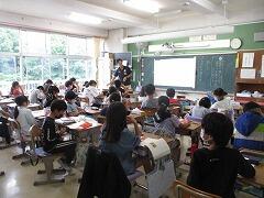 今日は4年3組の宇佐美先生が授業者です。教職員全員で参観しました。