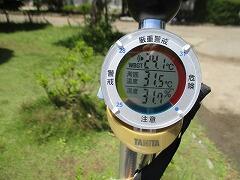昼休み直前の温度計です。上から、WBGT、周辺気温、湿度です。