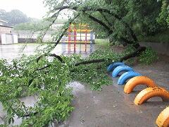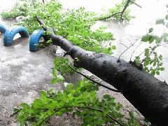 桜の木が一本根本から折れていました。桜は50年経って弱っているとは言え、ものすごい風が吹いたんですね。