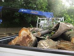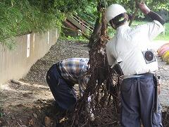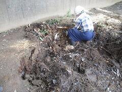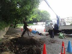 土に残った太い根っこもクレーンで引っ張り上げました。