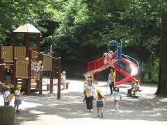 お家に囲まれた公園なので、ちょっと声のボリュームを落としての活動です。