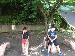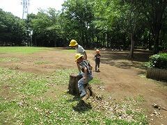 引率職員の担当の持ち場があったので、いろいろな場面の写真を撮ることはできませんでしたが、遊具がない場所なのですが、1つの切り株で遊んでいる子どもたちの姿を見かけました。そこにあるもので遊べるアイデアは素晴らしいなあ、創意工夫だなあと感じました。とても楽しそうだったので、体を動かして遊ぶ良さも改めて感じることができました。
