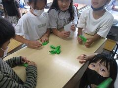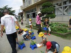 1組の平野先生がわき芽とりの方法を教えていました。さらなる生長が期待できます。
