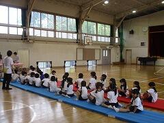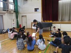 体育館で、3年生全体へリコーダーの講習会を行いました。