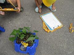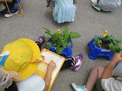 2組の子どもたちが観察をかねて、枝豆、パプリカなどを収穫しました。