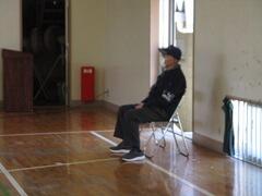 今日は、この椅子出しも大切な練習の1つです。20分ちょっとの時間が必要でした。この後、はじめの会の練習をしました。