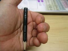 ちなみに、一生懸命勉強を続けていくと鉛筆は短くなっていきます。下の写真のように、鉛筆を握ってみて、手に隠れるか隠れないかで、勉強に適しているかどうかの目安にする、と自分が小学生の時に学びました。