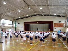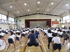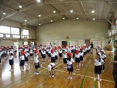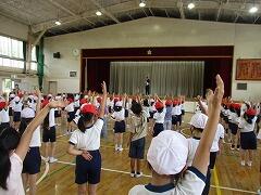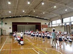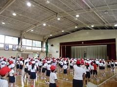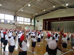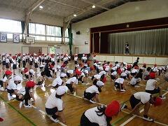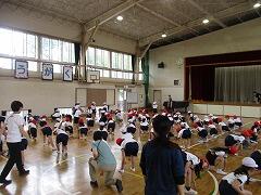 はじめの会はシンプルに、校長の話、ゴーゴーゴー(土南バージョンの歌です)、準備体操を行います。