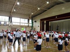 今日は、どの学年もダンスの練習でした。前に立ったリーダーの先生の動きに合わせて、振り付けを覚えます。